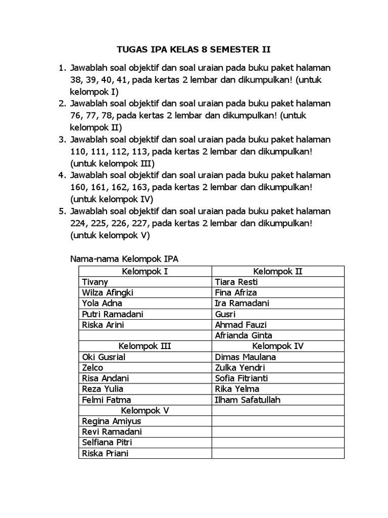 Tugas Menjawab Soal Yang Ada Dibuku Paket Ipa Kelas 8 Semester Ii Pdf from imgv2-2-f.scribdassets.com Maybe you would like to learn more about one of these? Tugas ipa halaman 224 kelas 8 semester 2. We did not find results for: Check spelling or type a new query.