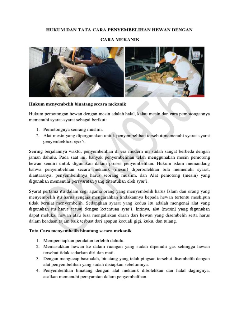 untuk "Tuliskan 5 Tata Cara Penyembelihan Secara Mekanik / Sebutkan Ketentuan Seorang Penyembelih Masnurul - Tuliskan 5 tata cara penyembelihan secara mekanik."