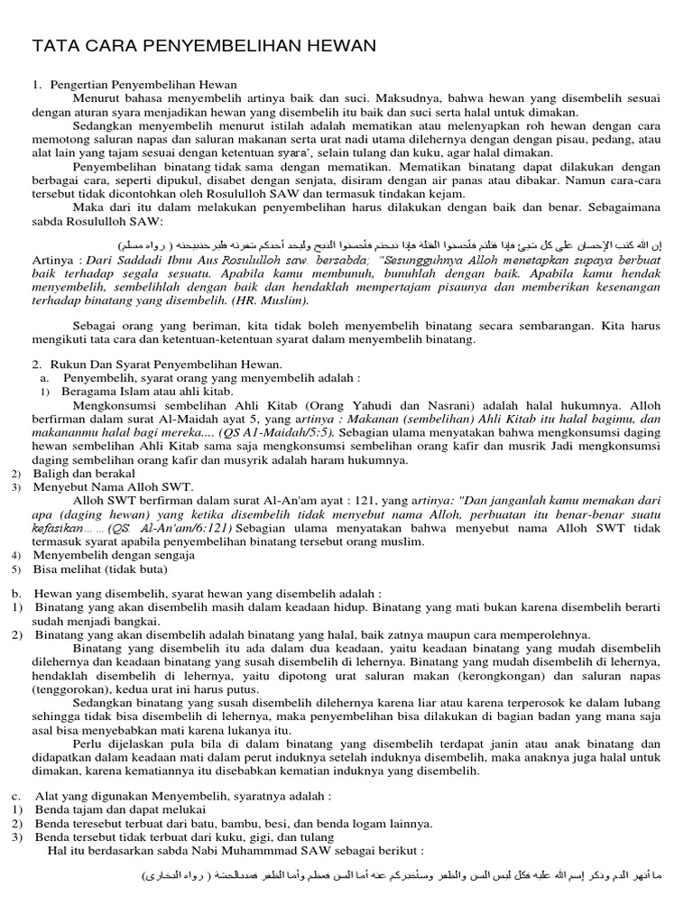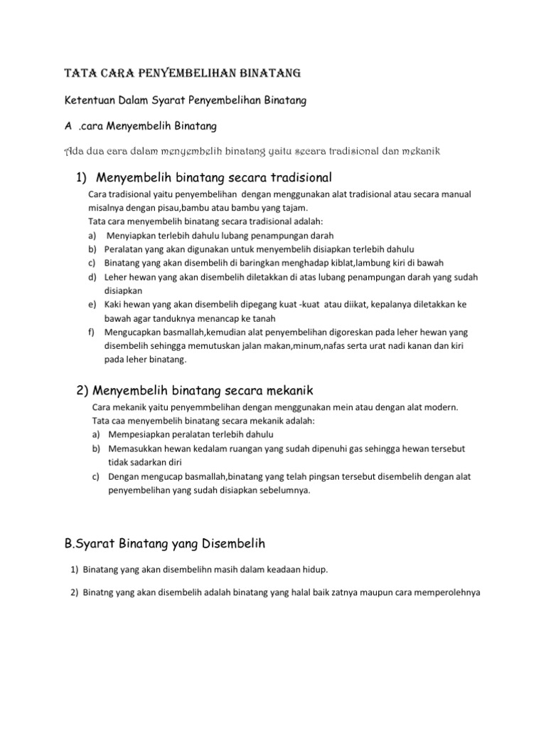 Maybe you would like to learn more about one of these? Tuliskan 5 tata cara penyembelihan secara mekanik. Check spelling or type a new query. We did not find results for: