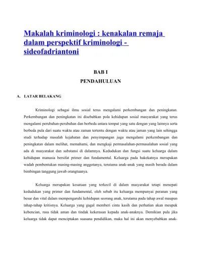 Contoh Makalah Lengkap Tentang Kenakalan Remaja - Makalah Tentang Kenakalan Remaja Lengkap Contoh Makalah - Kenakalan dikalangan remaja adalah hal yang memperihatinkan kenakalan ini mencakup semua perilaku remaja yang melanggar norma.. Anak tumbuh dan berkembang dalam. Kenakalan dikalangan remaja adalah hal yang memperihatinkan kenakalan ini mencakup semua perilaku remaja yang melanggar norma. Makalah kenakalan remaja tidak saja hanya membahas kenakalan saja tetapi akan membahas psikologis remaja terhadap perilaku menyimpang. Makalah ini merupakan hasil dari tugas mandiri bagi para mahasiswa, untuk belajar dan mempelajari lebih lanjut tentang topik kenakalan remaja berikut solusi . Komunitas/lingkungan tempat tinggal yang kurang baik.