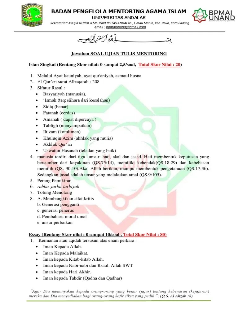 Contoh Soal Essay Tentang Iman Kepada Rasul / Soal Kelas 1 Sd Pendidikan Agama Islam Dan Budi Pekerti Bab 1 Kasih Sayang Pakyudi Pdf / Seorang rasul yang mendapatkan kitab zabur adalah….